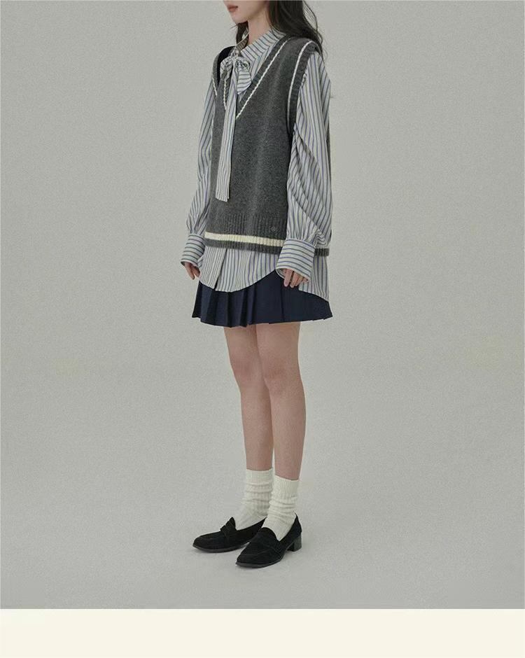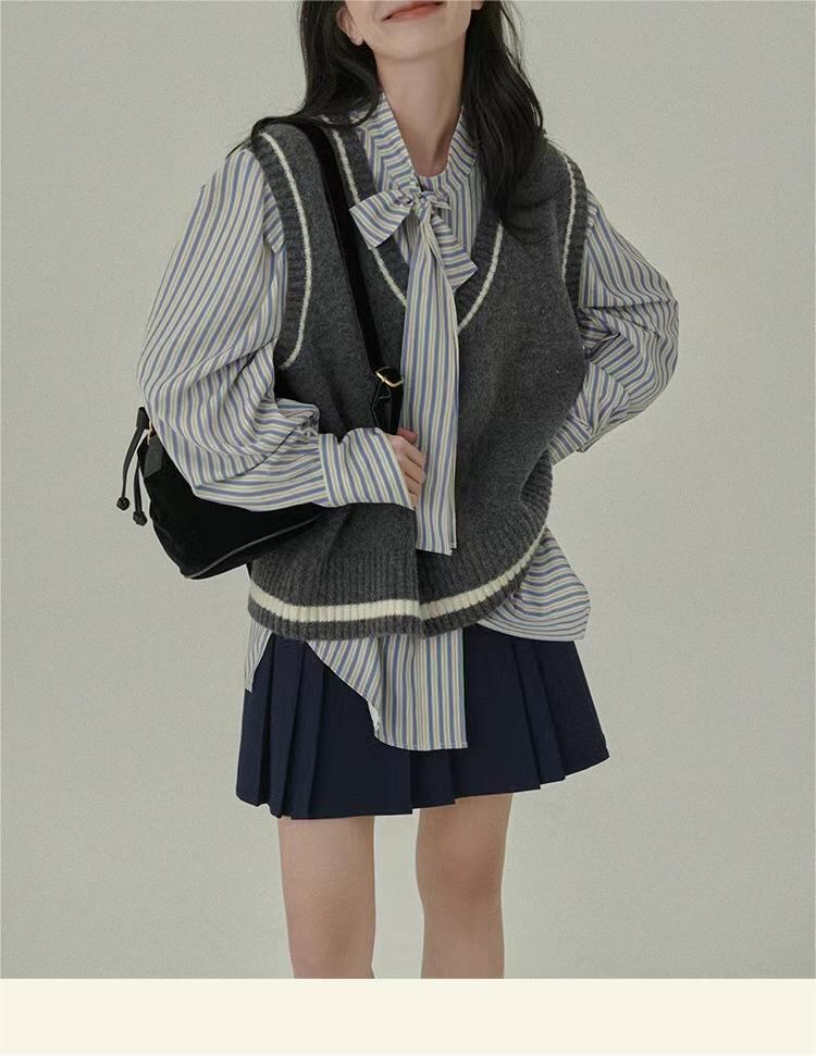 本当に早い者勝ちです 蝶ネクタイ エレガント ゆったりする ストライプ シャツ ブラウス 上着 女性