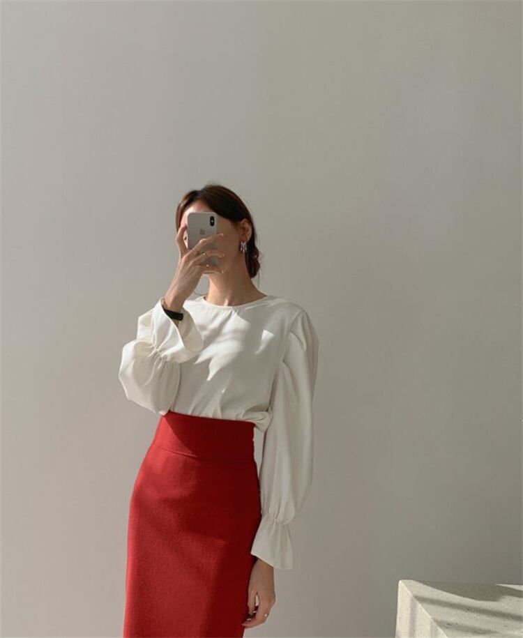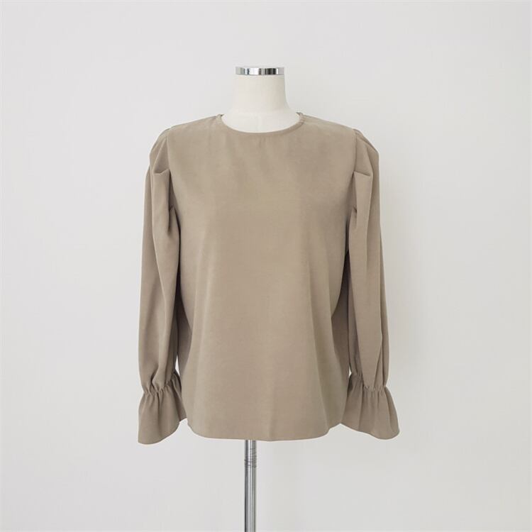 雰囲気のある佇まい ホーンスリーブ トップス シャツ エレガント ブラウス 長袖 上着 ラウンドネック