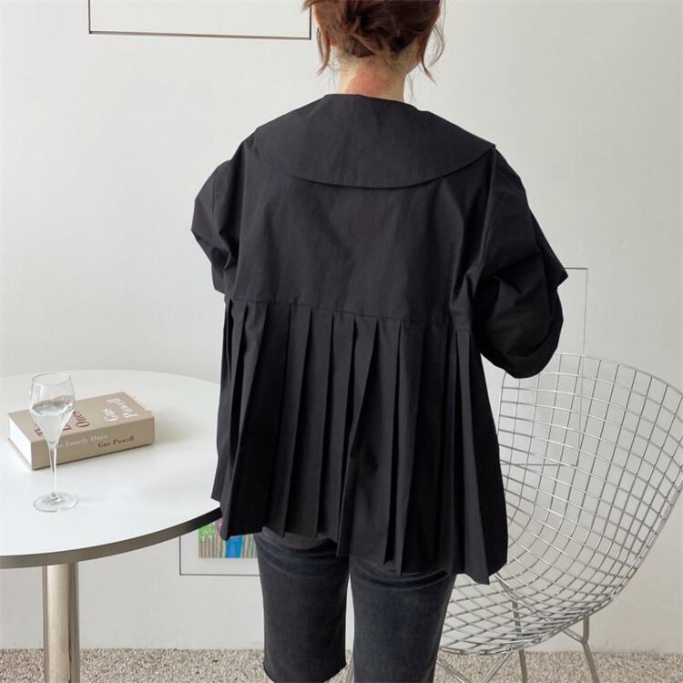 大満足のレビュー多数 ブラウス ゆったりする 百ひだデザイン 人形の襟 長袖 シャツ 上着 スリム