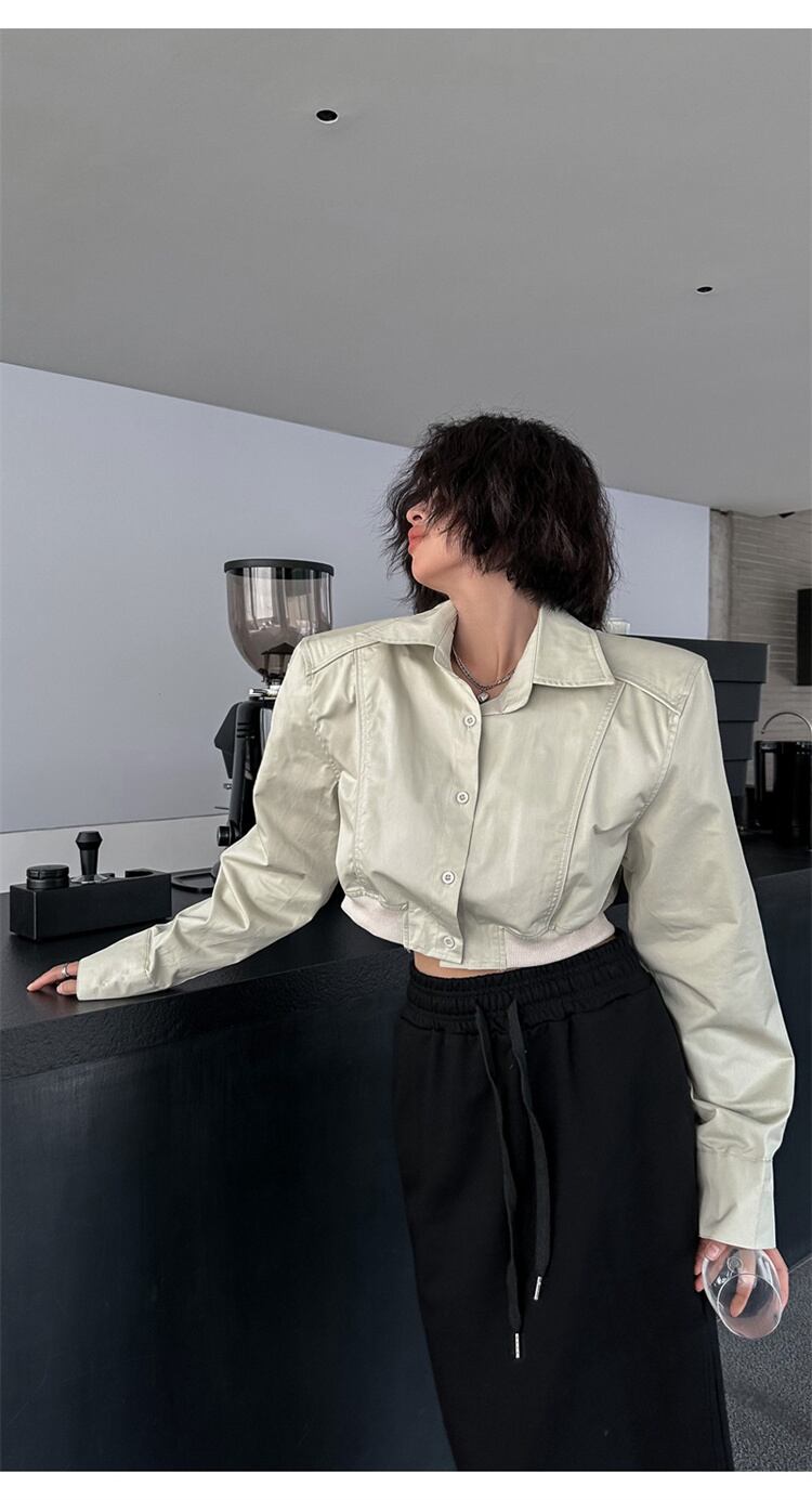 11月限定 秋 ハイウエスト 短いスタイル シャツ ショルダーパッド ブラウス スリム トップス 上着