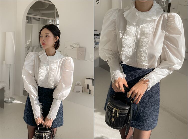 これが大好きです 気質 減齢 レース ブラウス スリム レトロ 宮廷風 上品映え ゆったりする ギャザリング