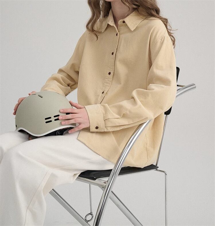 クーポン適用でお得に コットン コーデュロイ スリム 三色 トップス ゆったりする ブラウス 長袖