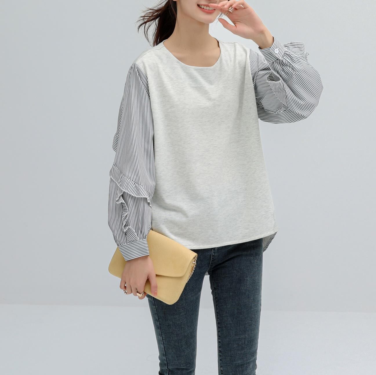 ブラウス 長袖シャツ 人気ブラウス ラウンドネック レディーストップス 2024年新作 着回し