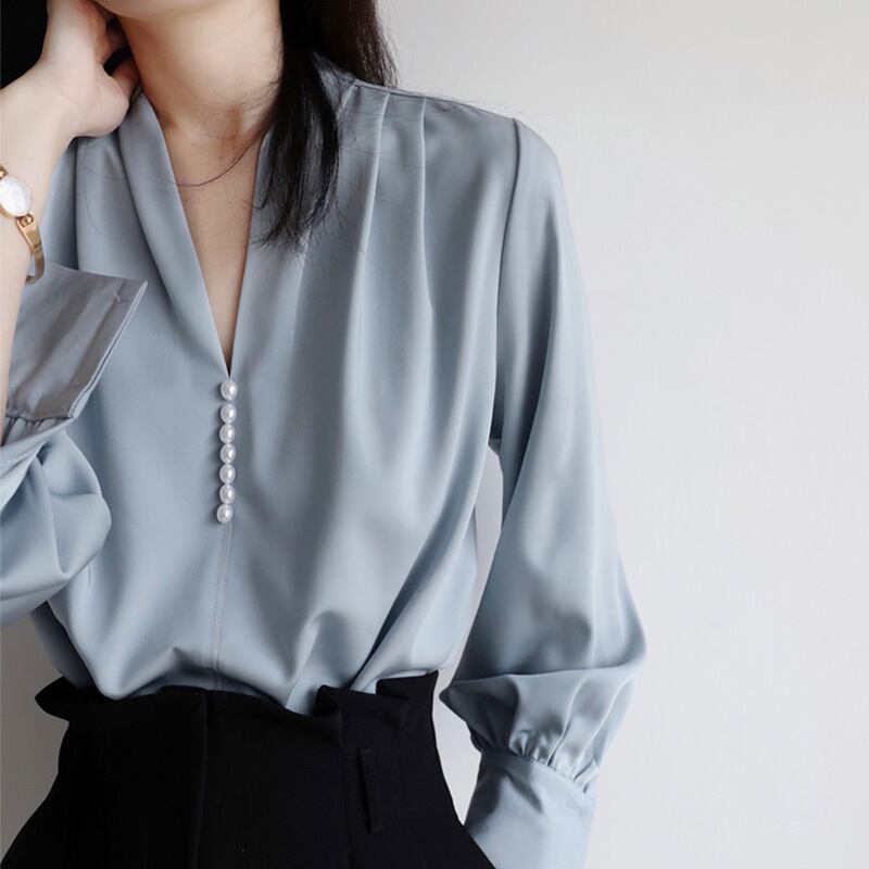 2024年春新作 ブラウス Vネック シフォンシャツ レディーストップス 長袖シャツ OL オシャレ 3色