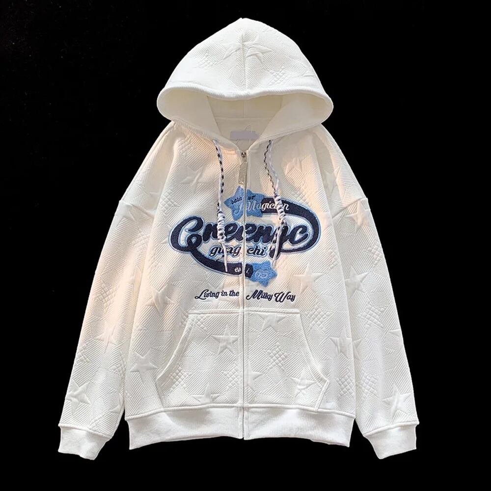 女性のためのアメリカンレトロジッパーパーカー、韓国の特大スウェットシャツ、トレンディなヒップホップ、ハイストリート、カジュアルy2kカーディガン、k-popスウェットシャツ、春と秋 パーカー ジャージ y2k T240908171146_01