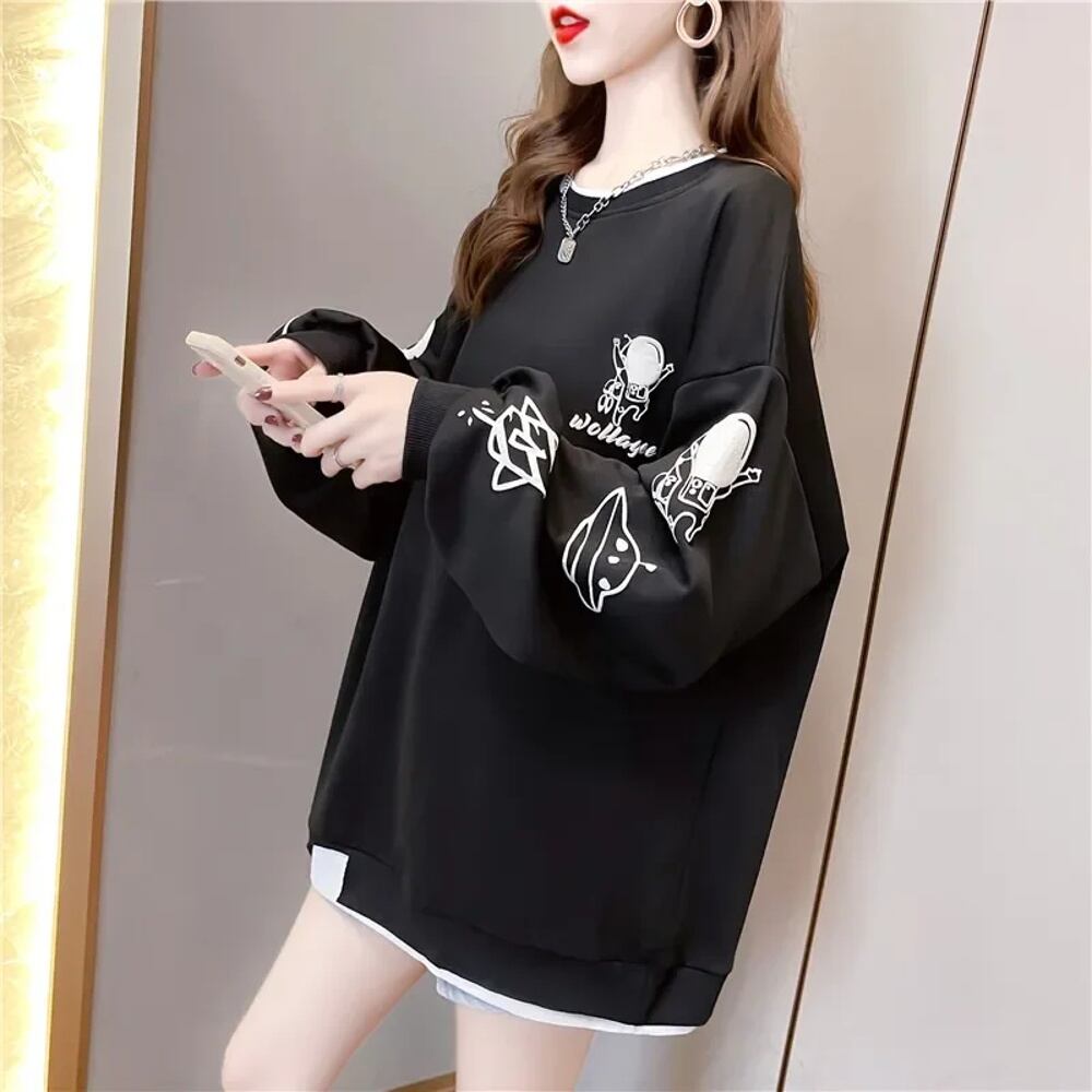 女性用2ピース長袖スウェットシャツ,韓国のカジュアルウェア,だぶだぶ,偽のタッチ,春と秋のファッション パーカー ジャージ y2k T240908171417_01