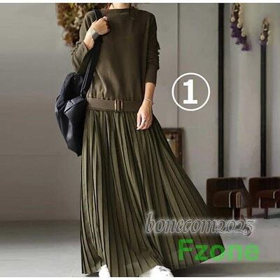 ワンピース レディース ニットトップス レイヤード風 ベルト付き マキシワンピース 長袖 秋冬 カジュアル きれいめ 通勤 旅行 お出かけ 30代