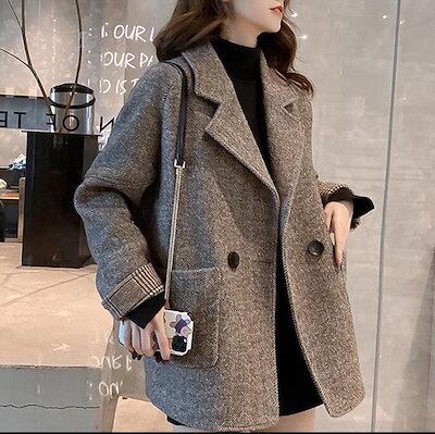 冬アウター ジャケット 韓国ファッション ブレザー コート レディース ツイード厚手ゆったりカジュアルブレザー 通勤