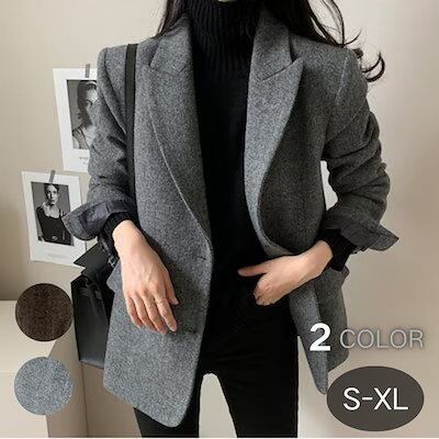 2024年秋冬物ファッション 冬アウター ジャケット韓国 ゆったりウールのブレザー 無地 コート レディース 通勤 オシャレ 大人