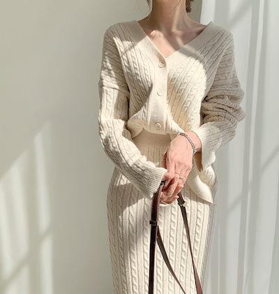 2024 秋冬 上下2点セット 高級感 カーディガントップス+タイトスカート お出かけ韓国 羽織り ショート丈 サイズ丈ボトムス ストレート系 ゆったりレディースシルエット スタイルアップワイド
