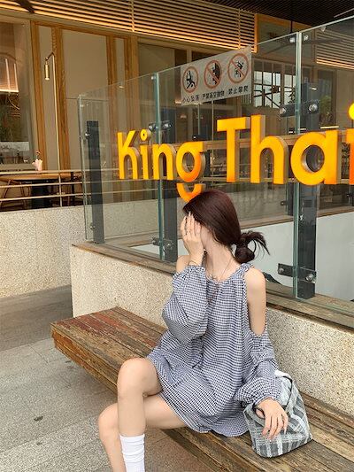 2024秋冬セットアップ トップス シャツ ラウンドネック ギンガムチェック オープンショルダー ショートパンツ ワイド ゆったり 秋 黒 ブラック おしゃれ かわいい 韓国ファッション レディース
