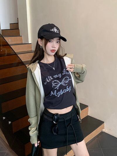 2024 秋冬アウター パーカー フード付き ジップ チャック 長袖 花柄 ポケット ハート 細見え 秋 緑 カーキ おしゃれ かわいい ガーリー キュート 甘め 韓国ファッション レディース お出か