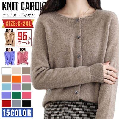 ニットカーディガン セーター ニットカーデ ビジネス レディース ボタン留め 秋冬 暖かい カーディガン ウール95% 前開き 長袖ニット オフィス