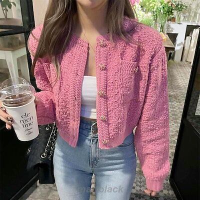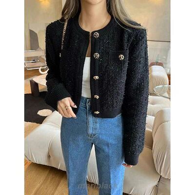 ニット カーディガン ジャケット レディース 秋 冬 春 ニット アウターショート丈 クルーネック トップス ノーカラージャケットゆったり 長袖 カジュアル 大人