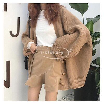 セーター カーディガン レディース 冬 ボリューム袖 厚手 トップス コート ゆったり 無地 前開き キレイめ かわいい アウター ニットウェア 20代30代