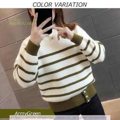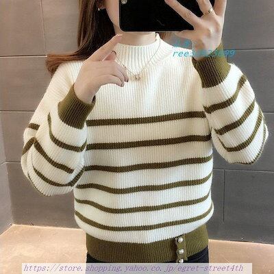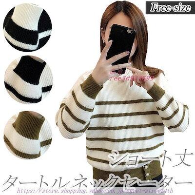 レディース 女性用 ウィメンズ トップス ニット タートルネック アウター トレーナー シンプル 長袖 セーター ボーダー オシャレ 通勤 上着