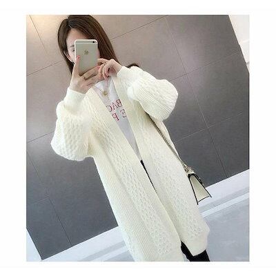 ニットカーディガン レディース 長袖 アウター カーディガン コート ロング丈 無地 ゆったり おしゃれ カジュアル 通学 春物 秋物 新作