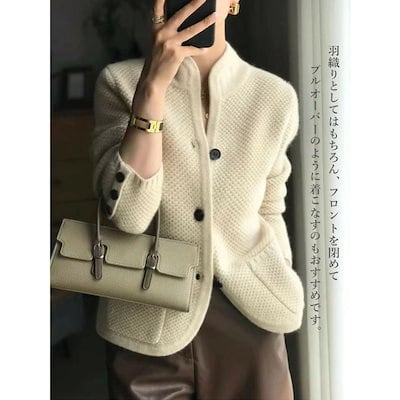 ニットカーディガン レディース 長袖 アウター ショート丈 セーター カシミア 無地 スタンドカラー シングル 前開き ゆったり 厚手 暖かい 通勤 きれいめ 大人