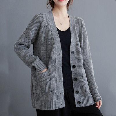 ニットカーディガン レディース 長袖 アウター ショート丈 セーター カシミア 無地 Vネック シングル 前開き リブ編み ゆったり 厚手 暖かい 通勤 きれいめ 大人