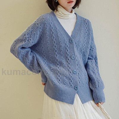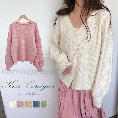ニットカーディガン レディース 前開き ニット トップス Vネック アウター ケーブル編み