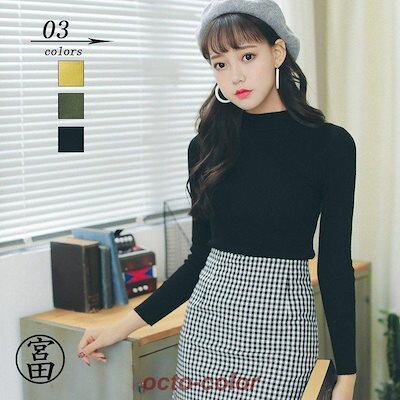 カットソー セーター プルオーバー クルーネック 長袖セーター ニットトップス レディース 秋物 上着 アウター ニット 無地 体型カバー