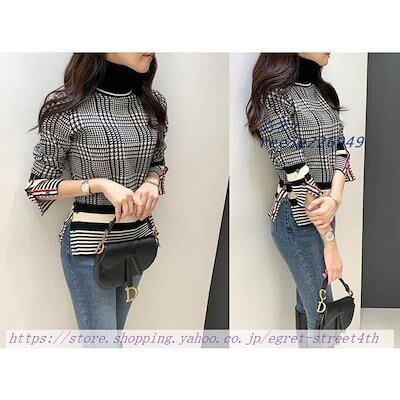 ニットセーター レディース 秋冬 セーター 長袖 ハイネックセーター トップス アウター タートルネック 千鳥柄 ハイネック カーディガン ギンガムチェック
