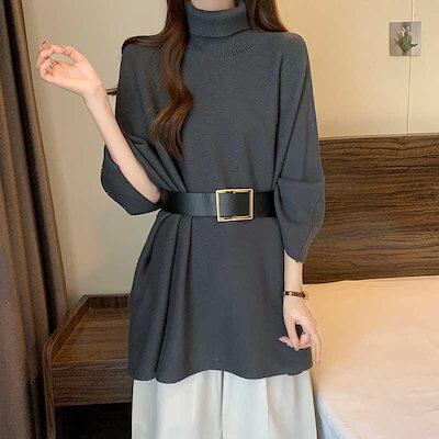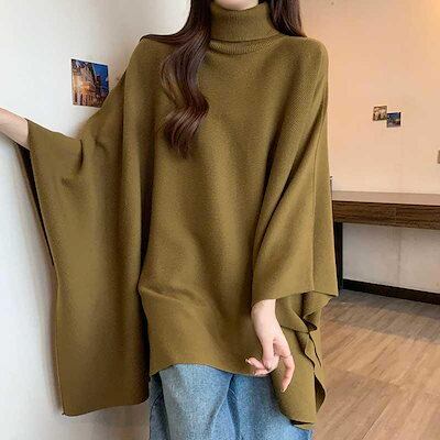 ポンチョ レディース ニット トップス セーター タートルネック 大きいサイズ マント アウター ハイネック ニットセーター 厚手 レイヤード プルオーバー ルーズ