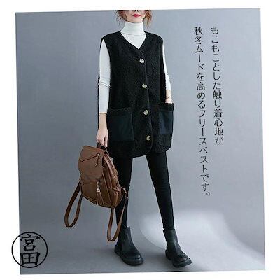 フリースベスト 前開き レディース ベスト 秋冬 アウター ロングベスト ジレ ファーベスト ノースリーブ ふわモコ 羽織 ロングコート ノーカラー 上着 ロング