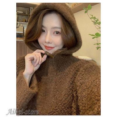 セーター ニット 長袖 レディース トップス 秋冬 アウター デザイン フード付き カーディガン オシャレ 厚手 あったかい ポケットあり モコモコ コーデ