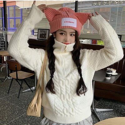 ニットセーター レディース ニットアウター 無地 タートルネック 長袖 ケーブル編み トップス カジュアル あったか きれいめ おしゃれ