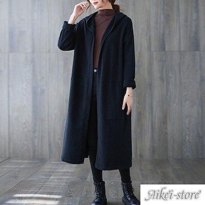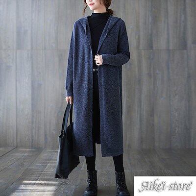 カーディガン レディース 秋 冬 セーター アウター ロングカーディガン 無地 ロングアウター フード付き コート カジュアル 体型カバー 大きいサイズ
