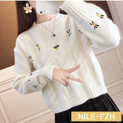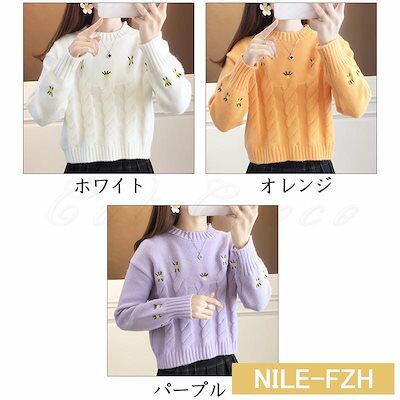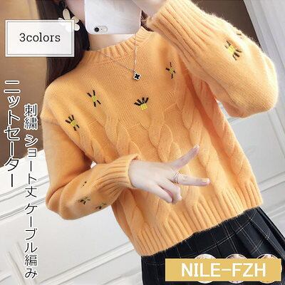 ニットセーター レディース ニットアウター 刺繍 ショート丈 ケーブル編み トップス カジュアル ゆったり あったか きれいめ おしゃれ