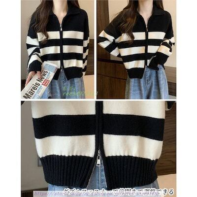 レディース 女性用 ウィメンズ トップス ニット ウール アウター オシャレ 長袖 上着 ボーダー ジャケット シンプル 通勤