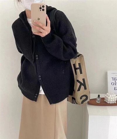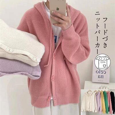 ニットパーカー ニット レディース トップス パーカー カーディガン 羽織り 長袖 フードづき ボタン留め 柔らか ゆったり カジュアル おしゃれ キレイめ ベーシックカラー 無地 あったか ア