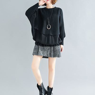 トップス レディース 秋 ブラウス 長袖 ニット セーター プルオーバー ニットセーター ドルマンスリーブ 無地 切り替え 体型カバー 大きいサイズ カジュアル オシャレ ゆったり シンプル 通勤 秋