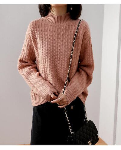 ニットセーター レディース 秋冬 ニット セーター 長袖 ケーブル編み ハイネック 長袖ニット プチハイネック プルオーバー 無地 インナー カットソー ゆったり 柔らかい トップス オシャレ リブニ