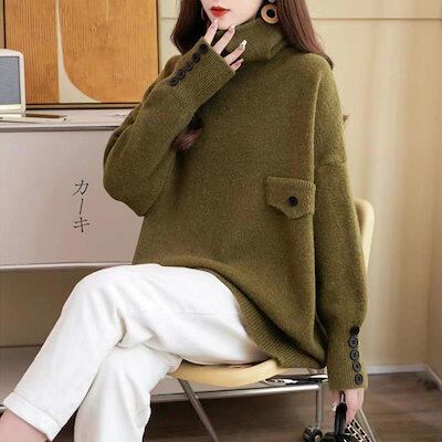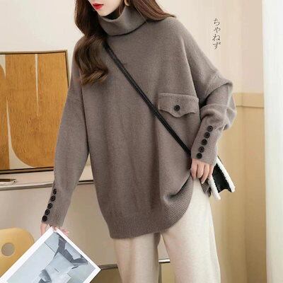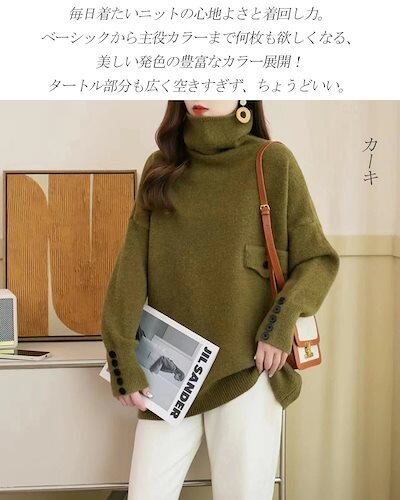 ハイネック ニット レディース 秋冬 冬 タートルネック セーター ゆったり ニットセーター トップス 長袖 長そで タートルネックセーター ドロップショルダー ハイネックセーター ひも付き あったか