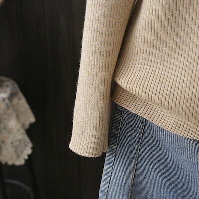 ニットセーター レディース 秋冬 ニット セーター 長袖 ハイネック 裏起毛 プルオーバー 無地 インナー カットソー 暖かい タイト リブニット 柔らかい 裏起毛ニット トップス シンプル オシャレ