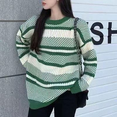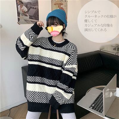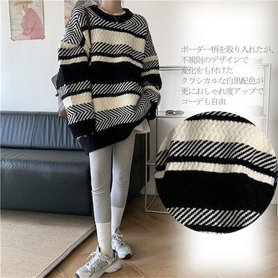 ニット セーター 秋冬 レディース トップス チュニック 大きいサイズ クルーネック 秋 冬 ニット セーター 長袖 ゆったり ボーダー 長そで ゆったり 厚手 暖かい きれいめ カットソー ニットウ