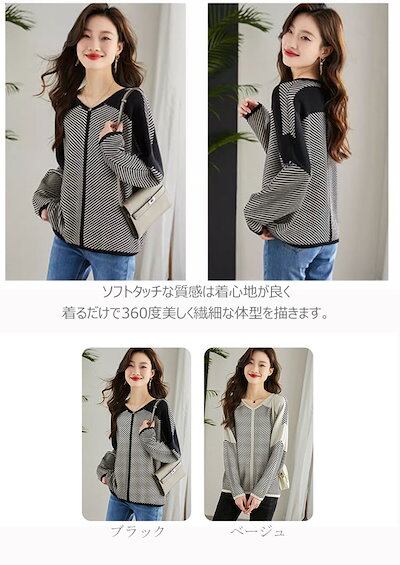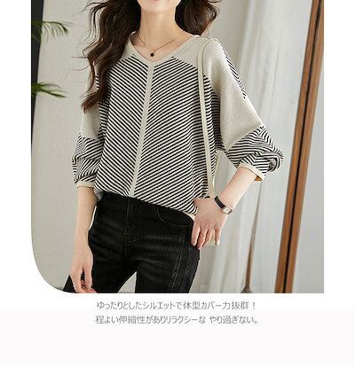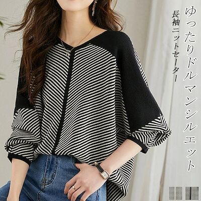 ニット 配色 レディース トップス 秋 春 セーター 長袖 ドルマン 大きいサイズ Vネック ドッキング ニットソー 切り替えニット プルオーバー 切り替え おしゃれ トレンド 流行りもの バイカラー