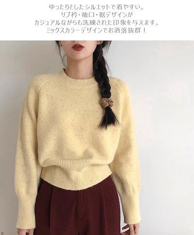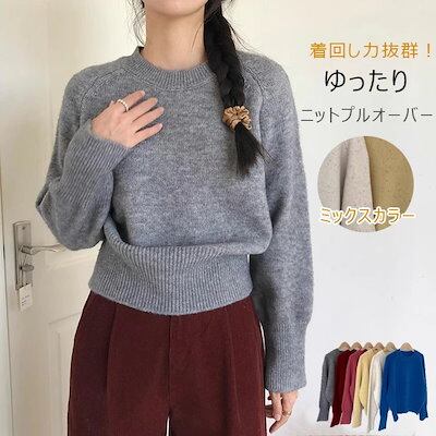 ニットセーター 秋冬 ミックスカラー レディース ニットプルオーバー セーター 冬 ゆったり クルーネック ニット トップス 長袖 長袖セーター 丸首 プルオーバー ニットソー リブニット カジュアル