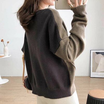 ニットセーター 秋冬 ニット レディース Vネック ボートネック ラウンドネック ドルマン セーター チャンキーニット 長袖 プルオーバー ざっくり ビッグシルエット おしゃれ 可愛い 無地 不規則