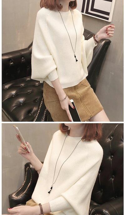 ニットソー レディース ニットセーター 秋冬 丸首 長袖 ドルマンスリーブ インナー ショート丈 セーター トップス 無地 コーデ カラバリ シンプル カジュアル 若者