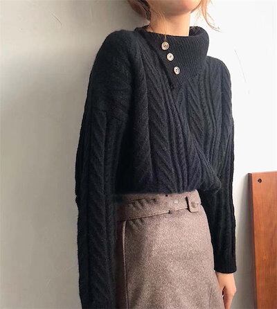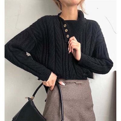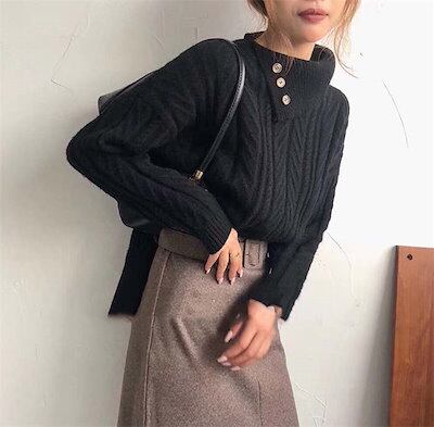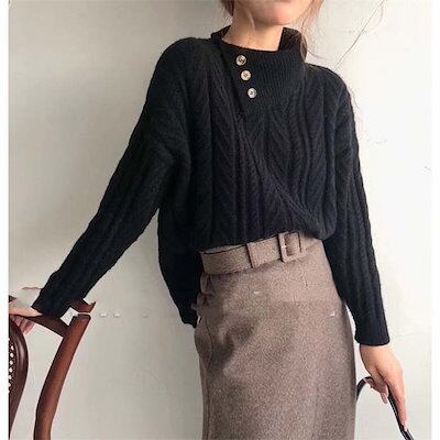 ニットセーター レディース トップス 長袖 厚手 暖か 防寒 無地 タートルネック ニット セーター ふんわり 秋冬 ドロップドショルダー アシンメトリー リブ ハイネック シンプル リブ編み 高級感