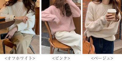 厚手ニット レディース ニットセーター ケーブル編み クルーネック ニット リブニット 着回し トップス セーター ゆったり 柔らかい もこもこ 無地 プルオーバー 長袖 秋冬 通勤 体型カバー シン