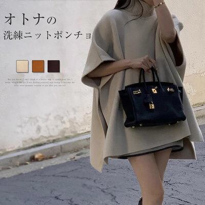 ニット ポンチョ ニットセーター レディース ポンチョ コーデ トップス ハイネック コットン 綿 秋冬 長袖 プルオーバー おしゃれ オーバーサイズ ゆったり ビッグシルエット サイドスリット 体型