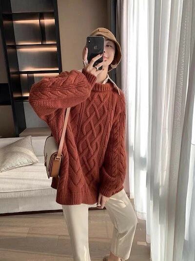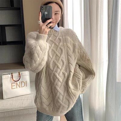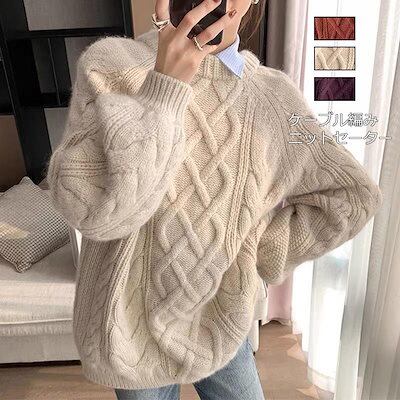セーター ケーブル編み レディース ニット トップス 秋冬 ニットセータ アウター プルオーバー ニット カットソー ニットソー 無地 長袖 uネック ドルマンスリーブ 柔らかい ショート丈 ニット