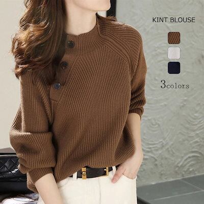 ニット セーター ニットセーター ブラウス レディース チュニック 長袖 ハイネック ニットソー インナー アウター ハイネックニット 秋冬 無地 カットソー プルオーバー トップス ゆったり 体型カ