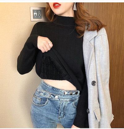 セーター ニット トップス カットソー 長袖 裏起毛 ニットセーター プチハイネック レディース 秋 冬 裏ボア 防寒 プルオーバー 無地 柔らかい アウター インナー ベーシック カジュアル あ