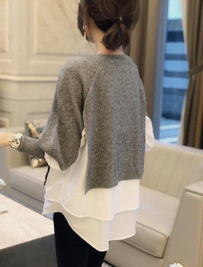 ニット レディース 秋冬 長袖 カットソー 春 ニットプルオーバー 切り替え インナー クルーネック セーター 異素材 秋 冬 トップス プルオーバー シャツ ニットセーター アウター ベーシック リ